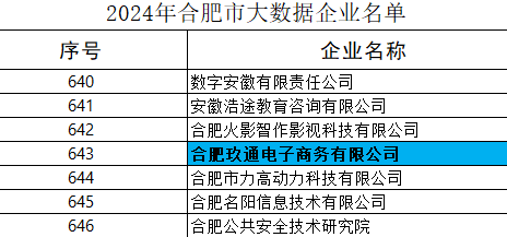 10月(yuè)11日(rì),合肥市(shì)數(shù)據資源管理(lǐ)局公布2024年(nián)度合肥市(shì)大(dà)數(shù)據企業(yè)名單,玖通(tōng)憑借著(∏zhe)在電(diàn)商領域的(de)突出成果,成功入選該名單,這(zhè)不(bù)僅是(shì)對(duì)玖通(tōng)的(de)認可(kě),也(yě)是(shì)對(du↔ì)公司成立以來(lái)發展成績的(de)支持和(hé)鼓勵。